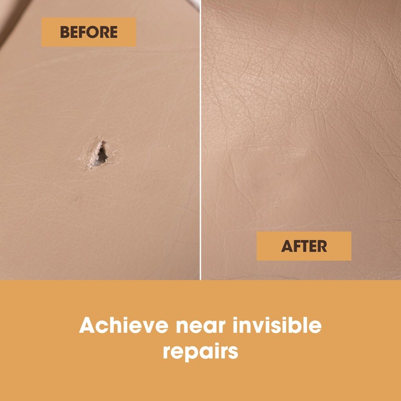 - COMPLETE REPAIR: For damaged leather or vinyl. Use for small rips, tears, holes, scratches, scuffs and burns.