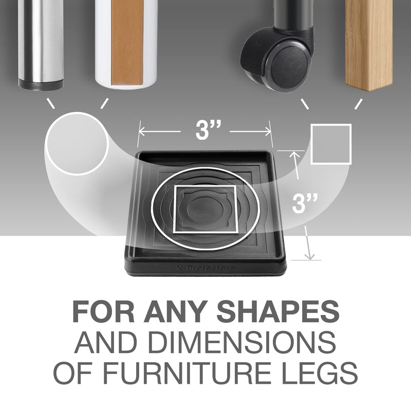 - ✌️ FURNITURE COASTERS by X-Protector have a UNIQUE DESIGN – THE SHAPE of the furniture legs DOES NOT MATTER – OUR NON SKID FURNITURE PADS ARE PERFECT FOR ANY KINDS OF THE FURNITURE FEET!
