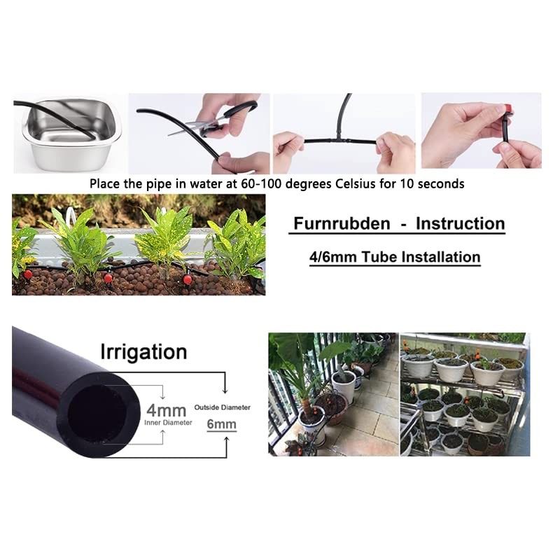 - Scope of application: suitable for spray system, cooling system, sprinkler system, etc. it is very suitable for small, narrow and compact planting areas; strong and flexible pipes, easy to expand and pile in gardens, flower beds, ground covers or other landscape areas; pre installation of pipes in hot water for 10 seconds;
