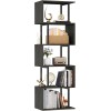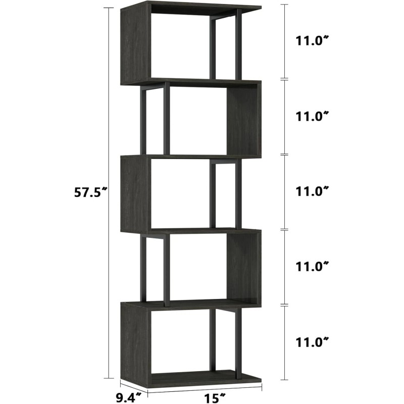 - [Unique Geometric Bookshelf]: S-shaped design makes this bookcase a work of art. Tall black shelf provides large storage space, satisfies various daily storage needs. Each of the 6 shelves is divided into 2 compartments, perfect for organizing books, collectibles, plants, albums, and other items in a neat and orderly manner.