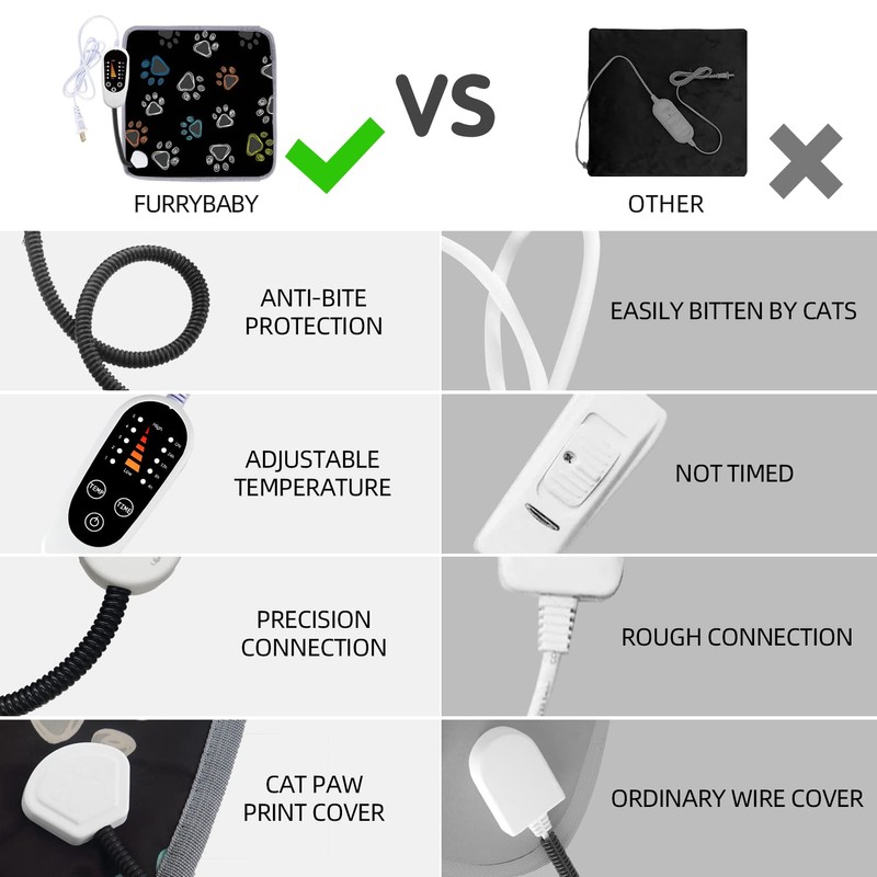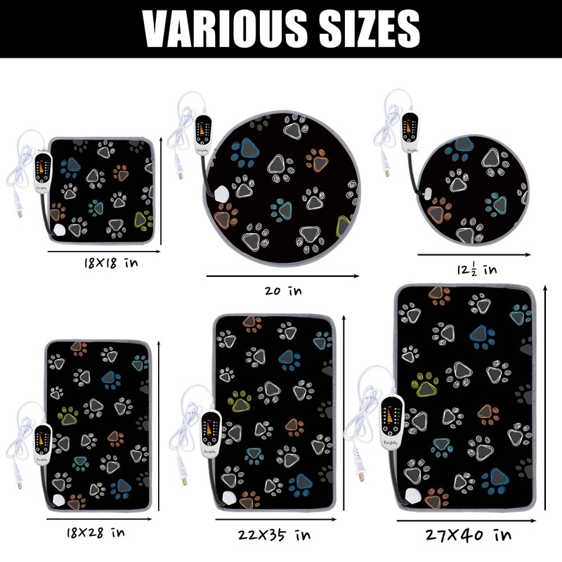 Furrybaby Pet Heating Pad, Waterproof Dog Heating Pad Mat for Cat with 5 Level Timer and Temperature, Pet Heated Warming Pad with Durable Anti-Bite Tube Indoor for Puppy Dog Cat (Black Paw, 17" X 17")