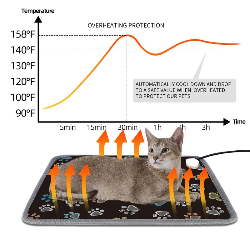 - SAFETY FIRST - The cat heating pad is a built-in intelligent overheat protection sensor, that will maintain a constant temperature you set when your pet sleeps on it. The automatic power-off feature will keep your pet safe life.