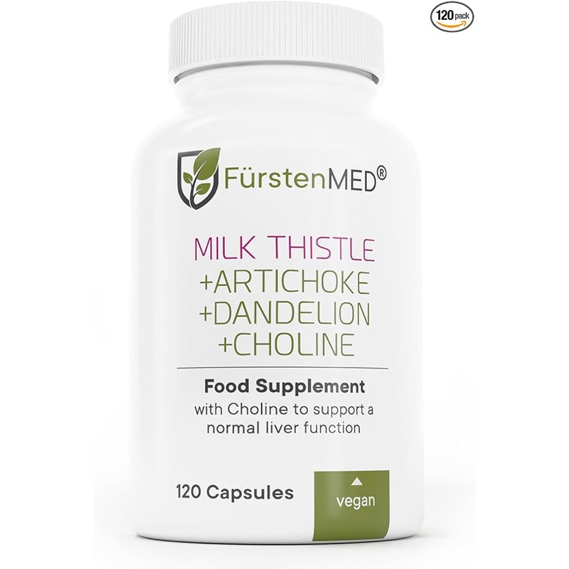 FürstenMED Milk Thistle with Artichoke Extract, Dandelion Root & Choline - Normal Liver Health Supplement - Highly Dosed with 80% Silymarin - Vegan Liver Support - 120 Non-GMO Capsule