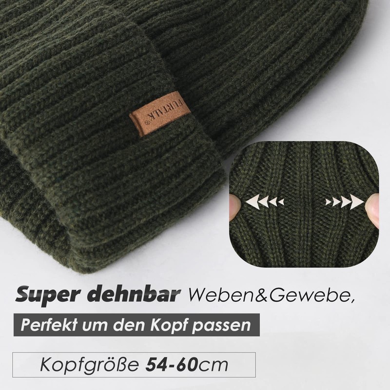 FURTALK Unisex Winter Beanie Chunky Knit Hat with Soft Fleece Lining Warm Winter Hat for Men and Women, Green