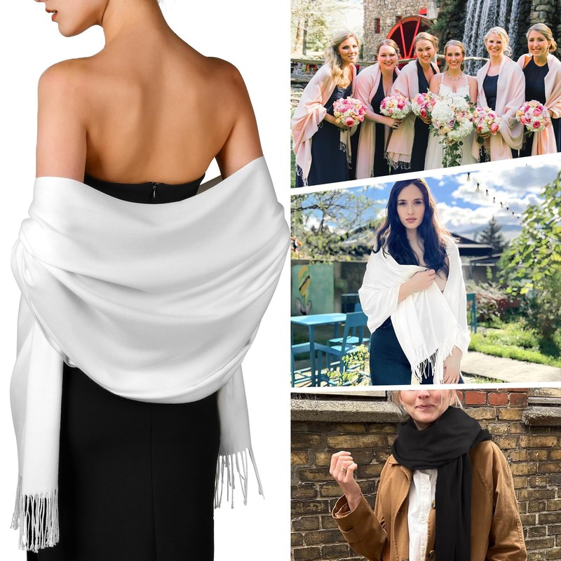 - THE PASHMINA SCARF SHAWL WRAP can be wore year round - As a trendy scarf wrap and popular gift, this shawl can be wore in many ways: 1)As a over the shoulder cover up which is the most popular for weddings; 2)As a cozy blanket scarf; 3) As a poncho or shawl; 4)As a traditional Scarf; 5) As a blanket on the lap;