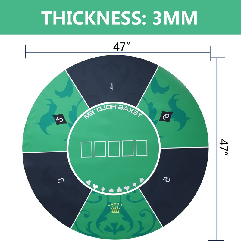 - [3MM THICKNESS] Measuring 47×47 inches, 3mm thickness mat has a certain sense of thickness, which is more durable and will not wrinkle up when play cards and so on. Designed with high elasticity rubber and multi-spandex materials, this table mat will bring you super comfort experience when playing cards. The mat is without stitched edges to prevent deformation or degum.