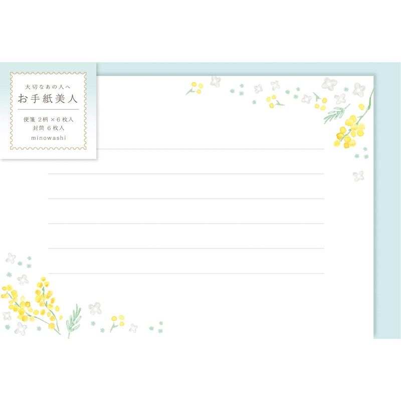 Furukawa Paperwork Letter Set, Letter Beauty, Mimosa and White Flowers LTB25