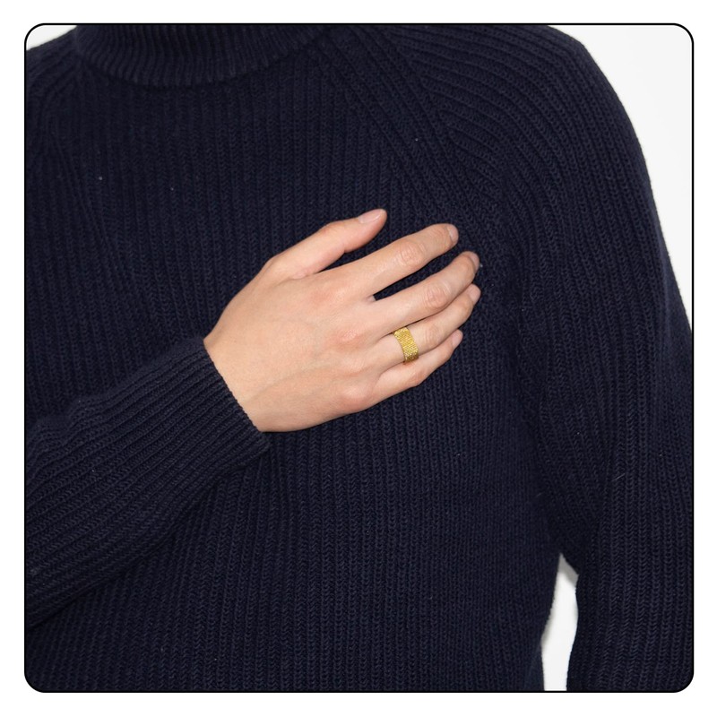 Fusamk Fashion 18K Gold tainless Steel Mesh Band Ring(Gold(8))