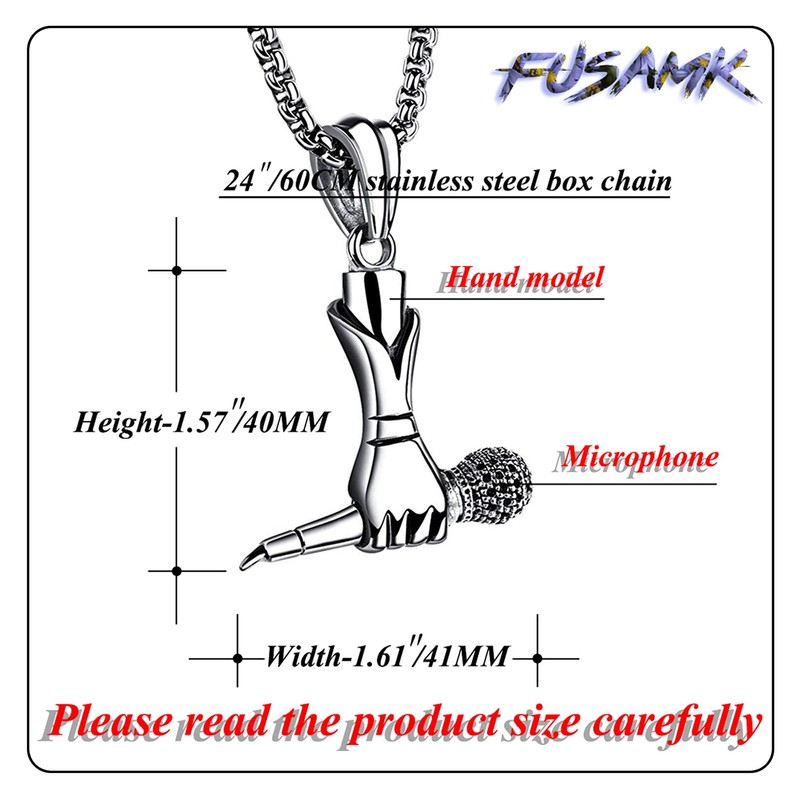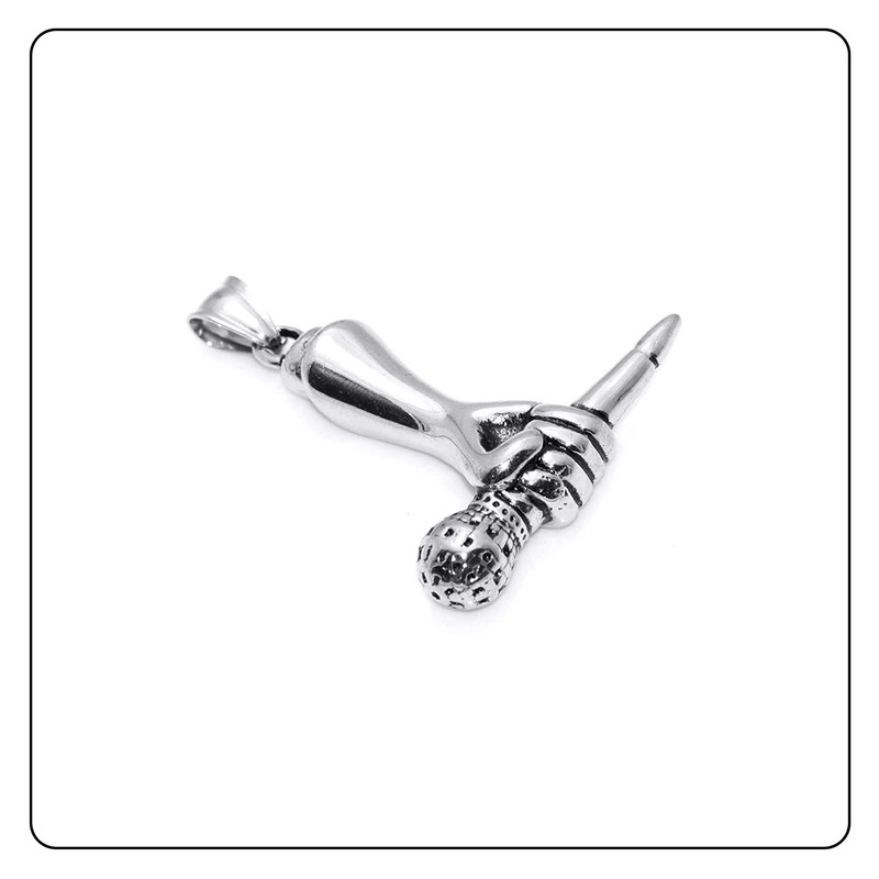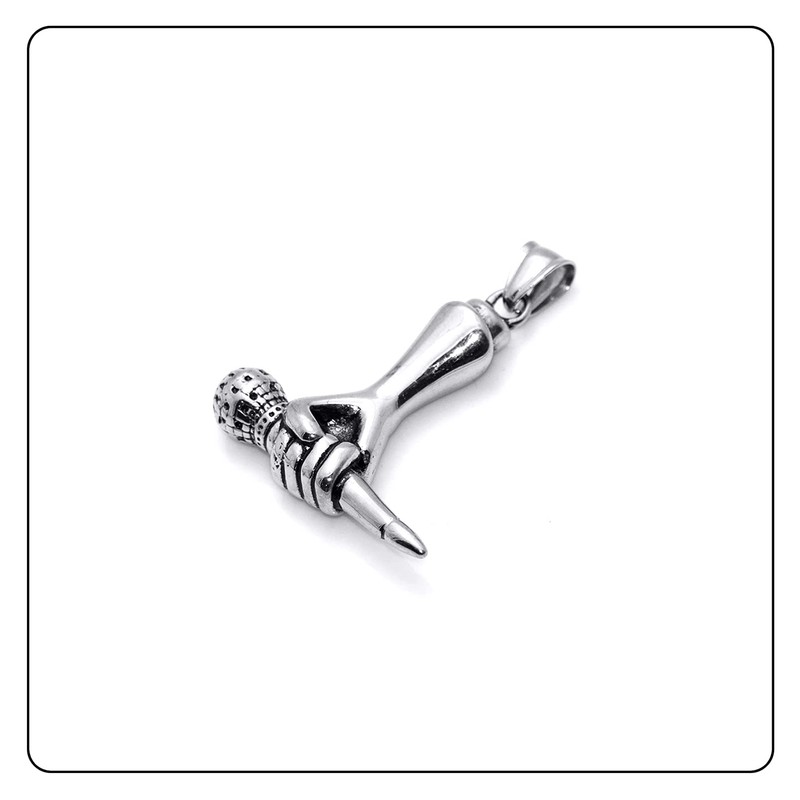 Fusamk Hip Hop Music Titanium Steel Microphone Tag Pendant 24" Chain Necklace(White)