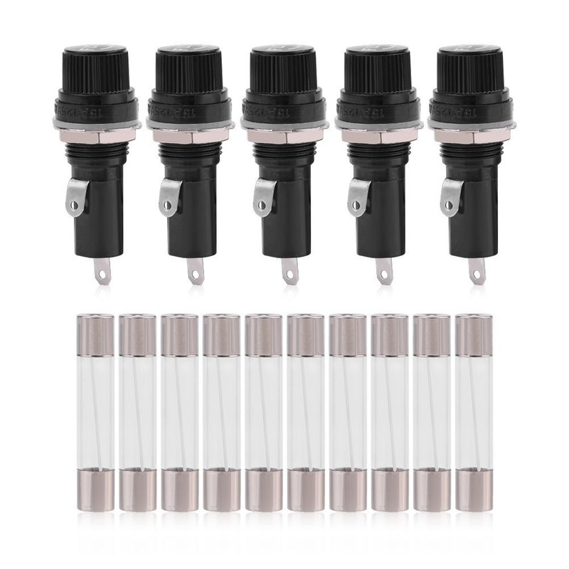 Fuse Holder Socket, Qiilu Fuse Holder, Fine Fuse, Pack of 5 Electrical Panel Mounted Fuse Holder Socket for 6 x 30 Glass Fuses AC 125 V 15 A / 250 V 10 A