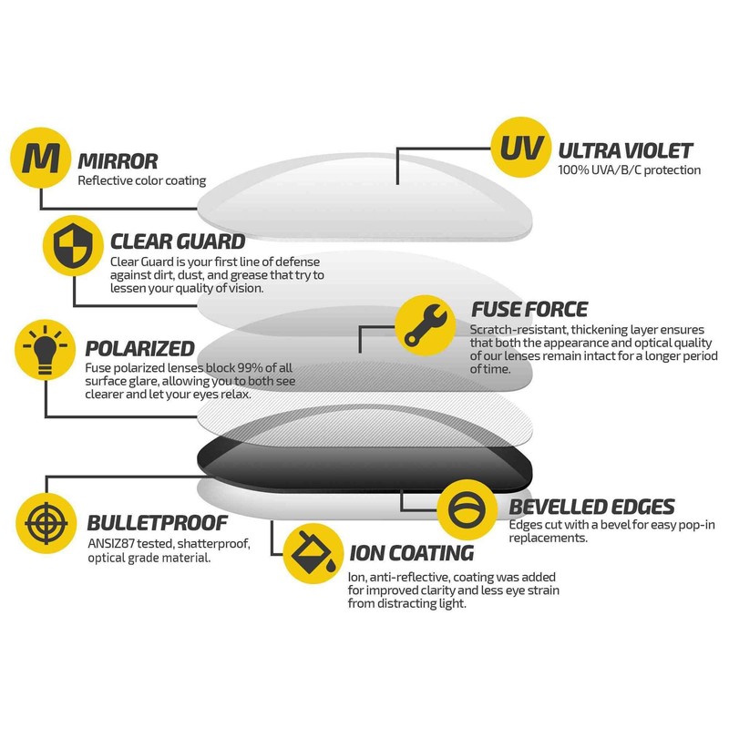Fuse Lenses logo and images are the copyright of EyeCandy Eyewear, LLC. Fuse Lenses is not associated with any other brand. All replacement lenses are custom made to order and are not original manufacturer’s (OEM) products and will not contain OEM logos or markings on the lenses.