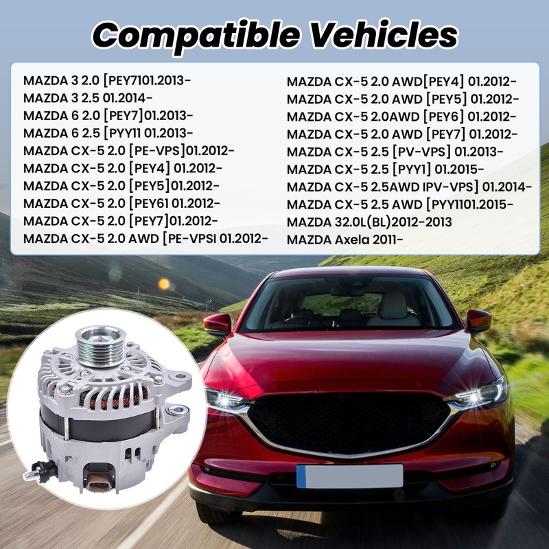 - Compatible Vehicles: Compatible with MAZDA 3 2.0 [PEY7101.2013-; MAZD.A 3 2.5 01.2014-; MAZD.A 6 2.0 [PEY7]01.2013-; MAZDA 6 2.5 [PYY11 01.2013-; MAZD.A CX-5 2.0 [PE-VPS]01.2012-; MAZD.A CX-5 2.0 [PEY4] 01.2012-; MAZD.A CX-5 2.0 [PEY5]01.2012-; MAZD.A CX-5 2.0 [PEY61 01.2012-; MAZD.A CX-5 2.0 [PEY7]01.2012-; MAZD.A CX-5 2.0 AWD [PE-VPSI 01.2012-; MAZD.A CX-5 2.0 AWD[PEY4] 01.2012-
