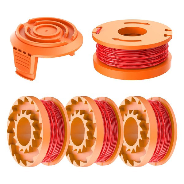FUSHUI Strimmer Spool, 4Pcs WA0010 Spool Line with 1 Cover Compatible with 20V Grass Trimmers Replace of WA0004,WG151,WG163E.1,WG163E.2,WG163E.3,WG163E.6