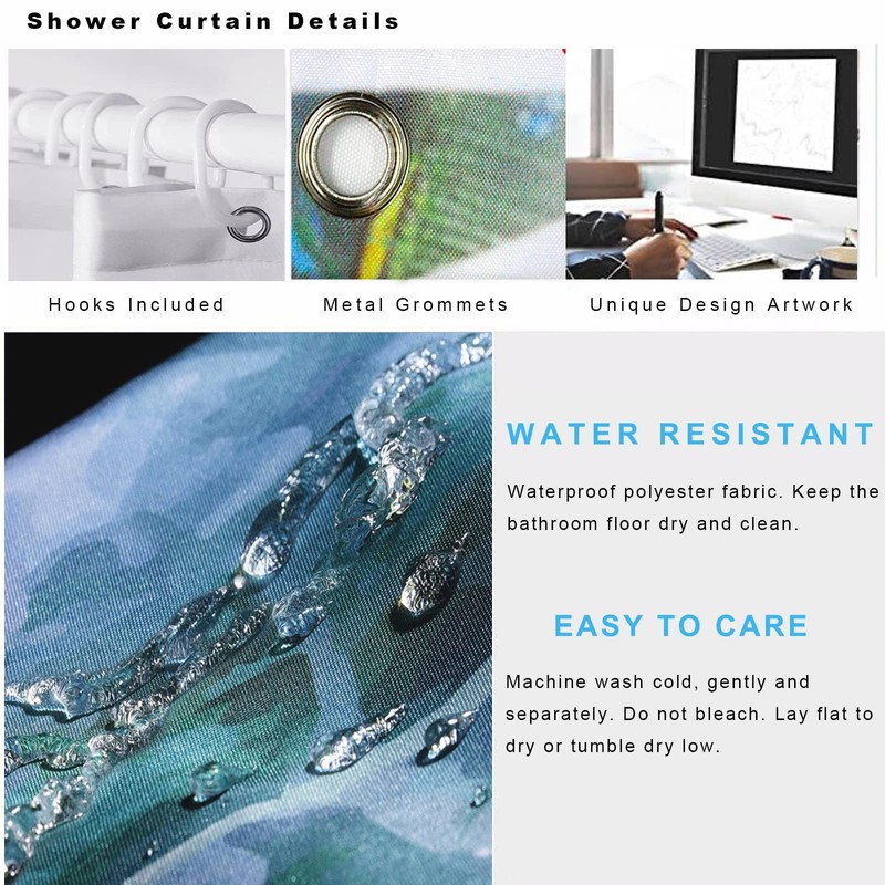 Usage:shower curtain,bathroom stall curtain,bathtub curtain,or as a wall tapestry for bedroom,party.It has grommets holes to hang on.