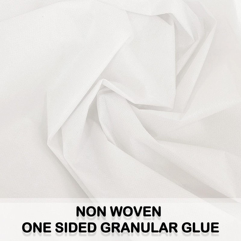 - THIN AND LIGHT FUSIBLE INTERFACING FABRIC:One sided fusible interfacing fabric is made of high quality non woven material and one sided granular glue with full dots and strong adhesion, the non-woven fusible interfacing has nice adhesion, also not easy to lint or foam after washing