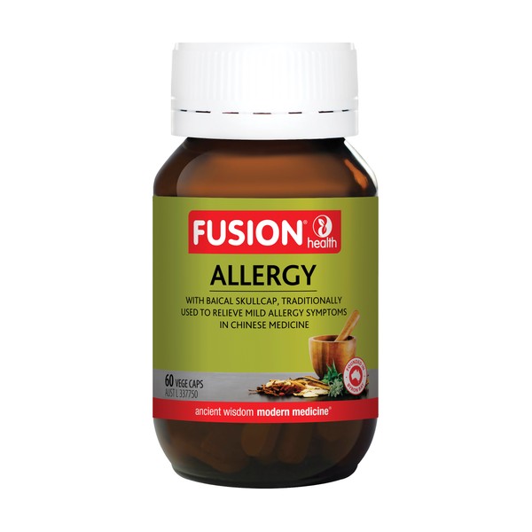 Contains baical skullcap, which is traditionally used in Chinese medicine to relieve symptoms of mild allergies, including hayfever symptoms such as red, itchy eyes and a runny, blocked or itchy nose Baical skullcap is also traditionally used to relieve mild eczema symptoms and soothe inflamed skin in Chinese medicine Fusion Allergy contains a total of seven Chinese herbs, including bupleurum, ginger, pinellia, Korean ginseng, Chinese licorice, ziziphus and baical skullcap Also consider Fusion Sinusitis, which includes xanthium to relieve sinus congestion and post-nasal drip, based on its traditional use in Chinese medicine.