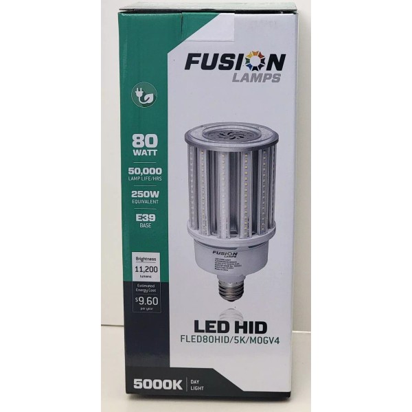 • Product Line: FUSION LAMPS LED HID FLED80HID/5K/MOGV4, 80W, E39BASE, 5000K DAY