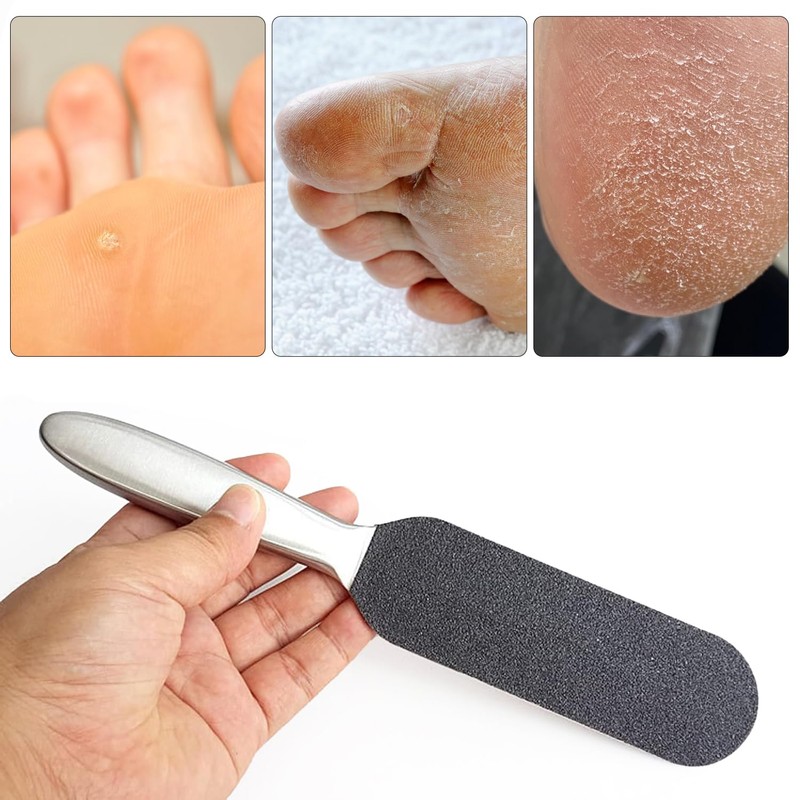 - Hochwertiges Edelstahlmaterial: Unsere Fußfeile ist aus hochwertigem Edelstahl gefertigt. Dieser Materialtyp ist robust, widerstandsfähig und langlebig, was eine zuverlässige Reinigung und Entfernung von Hornhaut garantieren.
