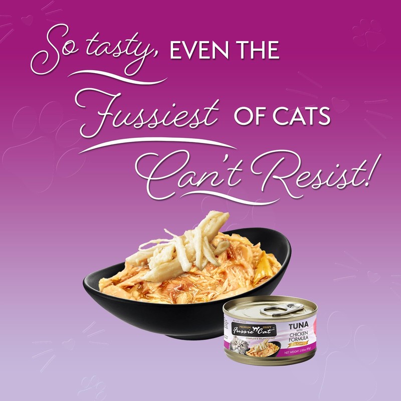 - Fussie Cat Bundle Pack includes (12) 2.82oz cans. 3 of each flavor ( 4 flavors) With a HS PET FOOD BOWL