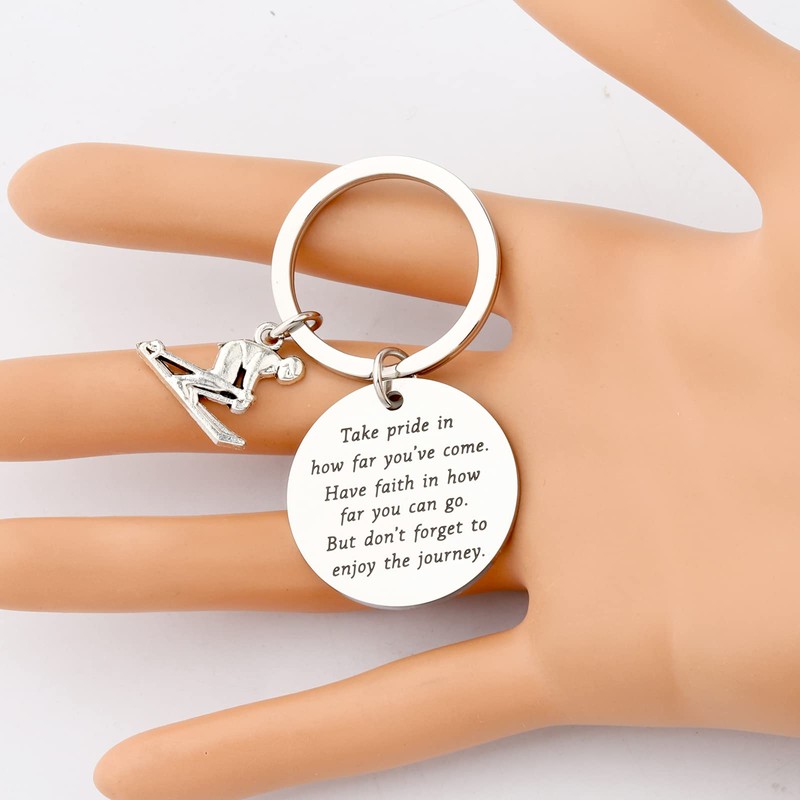- ❥Skiing Charm Gifts❥Funny ski gifts skiing inspiration gifts positive quote message gifts engraved with‘take pride in how far you’ve come. have faith in how far you can go. but don’t forget to enjoy the journey.’Gifts for learner skis sport lover gift Skiing Keyring.