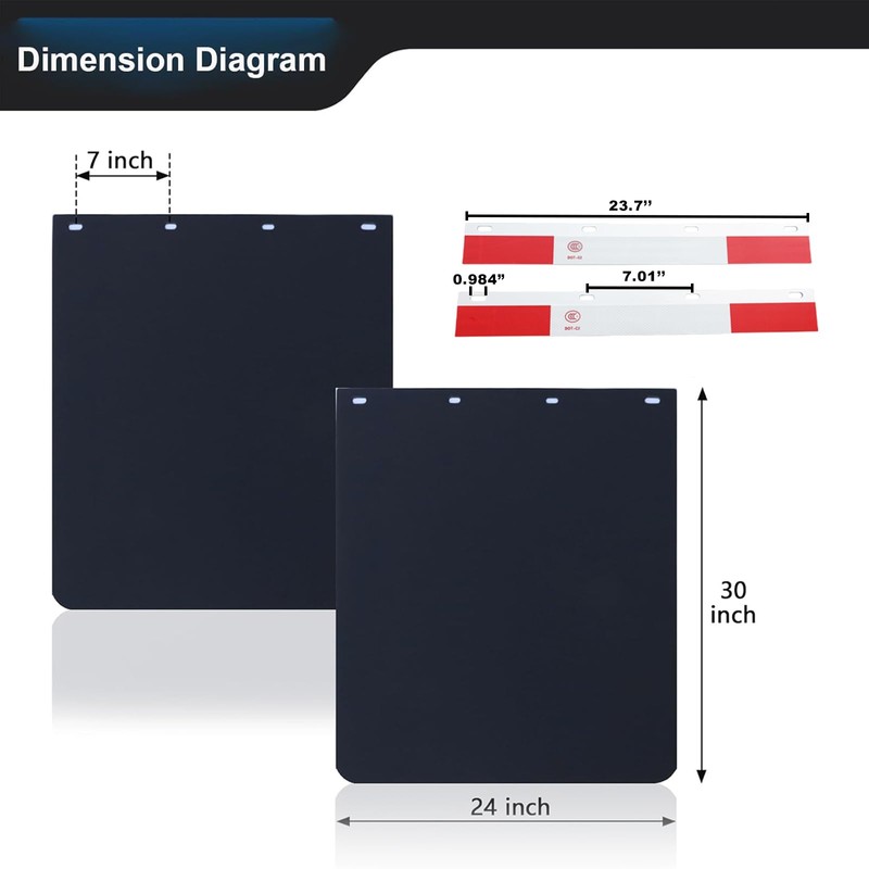 FUTAIHE Mud Flaps for Semi Trucks Mudflaps Tractor Trailer Heavy Duty with Aluminum Alloy Reflector Plates Strips TPE Polymer Rubber Oversized Splash Guard, 24 x 30Inch Double-Sided, 2PCS