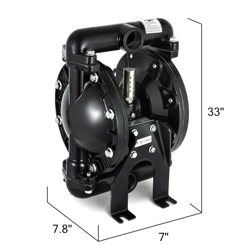 - Pneumatic Double Diaphragm Pump:with 1 inch inlet and outlet. This powerful air-operated double diaphragm pump QBY4-25L has 1 inch. Inlet and 1 inch. Outlet capable of pumping 35 gallons per minute at temperatures up to 150 degrees Fahrenheit