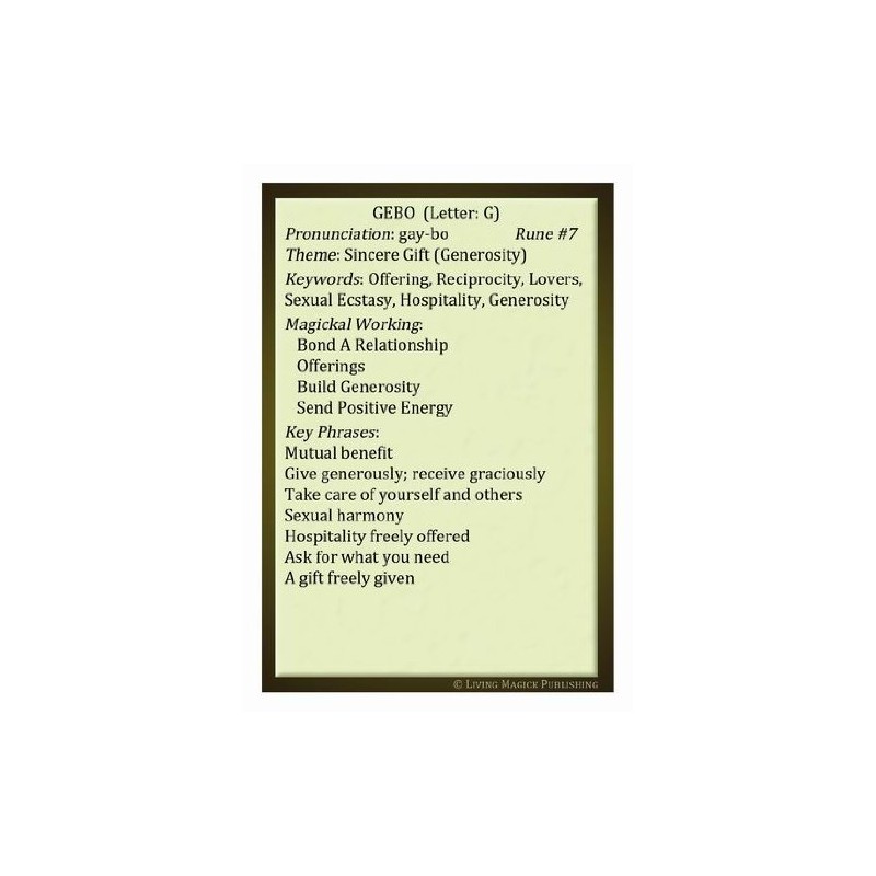 Features keyword reminders for all of the runes, as well as their pronunciation and their alphabet correspondence. This is a handy, portable tool for quick memory refreshers.