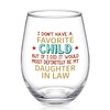 - MOTHERS DAY GIFTS FOR DAUGHTER IN LAW: Are you still looking for a unique gift for your beloved mother? This "I don't have a favorite child, but if i did it would most definitely be my daughter in law" stemless wine glass will be your best choice. Your daughter in law mothers day gifts will be very surprised to receive this warm daughter in law gifts for Mother's Day, birthday and Christmas.