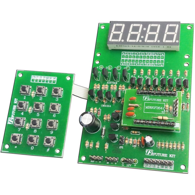 This is a kit that once complete provides a small interactive LED 4 digit display, an attached keypad allowing you to enter the displayed value. The board is designed to be connected to larger digit displays, allowing you to control much larger displays. This is a DIY kit and as such will arrive unsoldered. The kit makes ideal practice for hand soldering with clear solder pads and an easy to read circuit board.