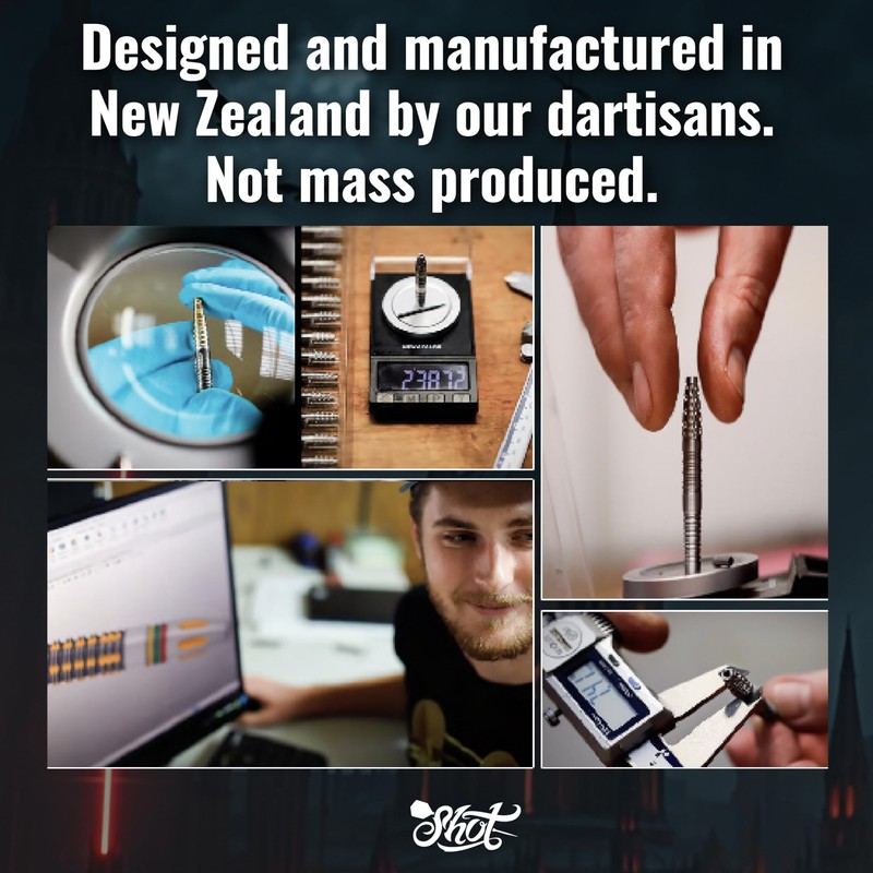 - MADE IN NEW ZEALAND- Since 1970, Shot Darts dedication is to bring you the best professional and quality darts on the market. 100% SATISFACTION PROMISE-We stand behind the high quality of our products. All Shot Tungsten dart barrels have a lifetime guarantee. When you purchase a 90% Tungsten Dart Set, they are matched weighted by hand at our factory to a tolerance of +/-0.05gm, which means better overall results.