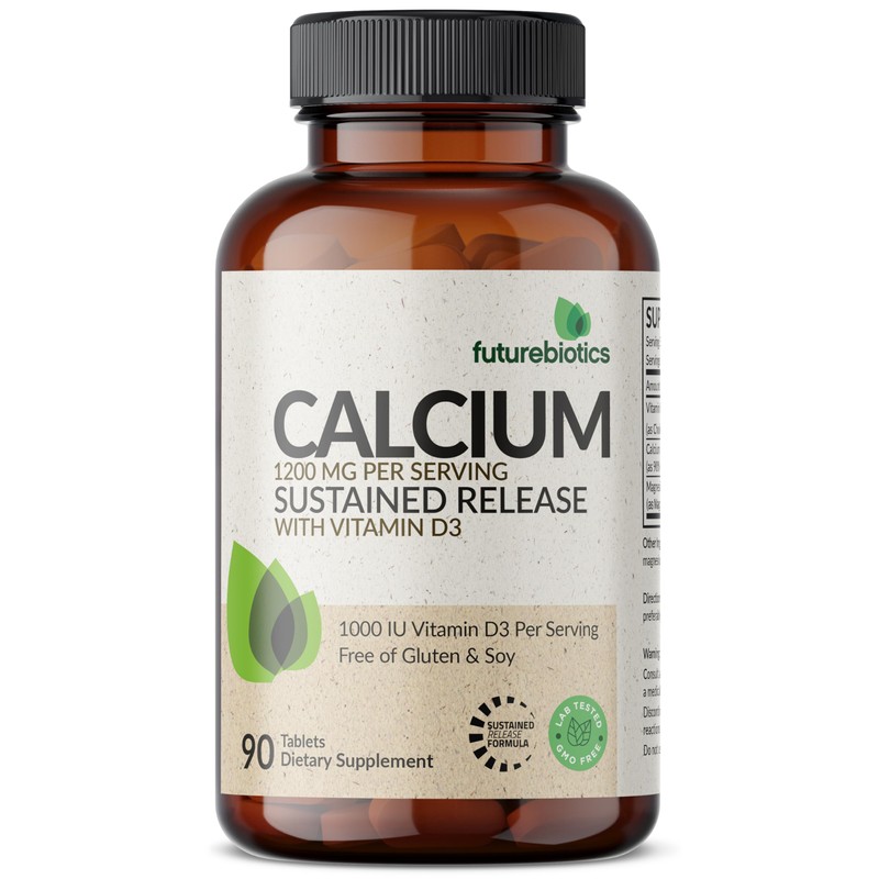 - Sustained Release Calcium Tablets: Futurebiotics Calcium Sustained Release provides 1200 MG of Calcium per serving plus Vitamin D3 and Magnesium. Our Sustained Release formula slowly releases over time to provide a steady balance of Calcium throughout the day.*