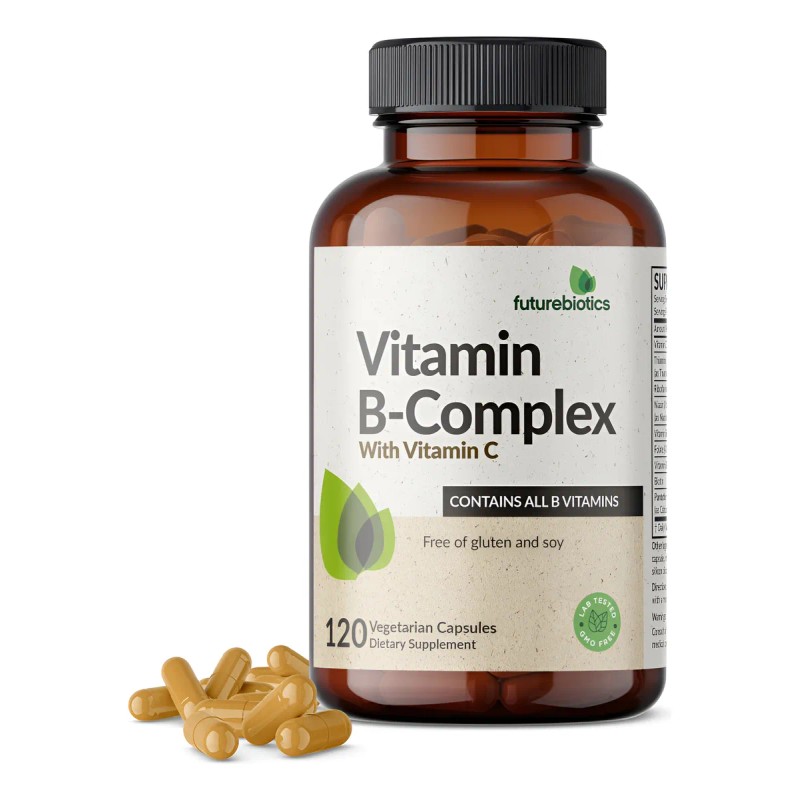Contiene Todas las Vitaminas B + Vitamina C: La fórmula Futurebiotics B-Complex contiene Vitamina B1, B2, B3, B6, Ácido Fólico, B12, Biotina y Ácido Pantoténico además de Vitamina C en una sola cápsula vegetariana.