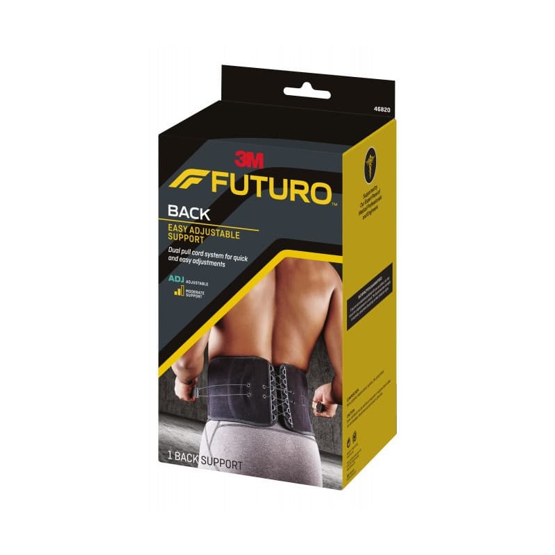 The FUTURO™ Adjustable Back Support is designed to help relieve lumbar region back pain due to muscle fatigue or strains. It permits full range of movement while providing comfortable support and compression. Great for the workplace, recreation and at home.