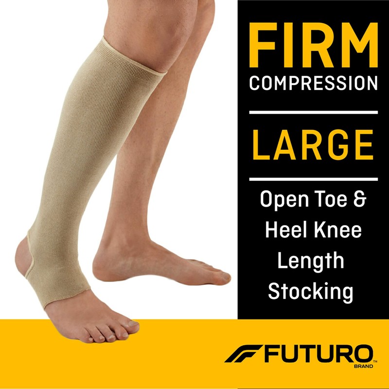 FUTURO Open Toe/Open Heel Knee Length Stocking, Firm Compression (20-30 mm/Hg), For Standing or Sitting All Day, Beige, Large, Unisex, 1 Stocking