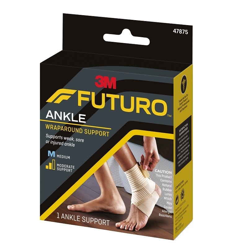 This Futuro Wrap Around Ankle Support offers firm support to help relieve pain due to ankle sprains, chronic ankle instability and over use syndromes. It also helps to provide protection from further injury. Wear all day or during activities which lead to discomfort.