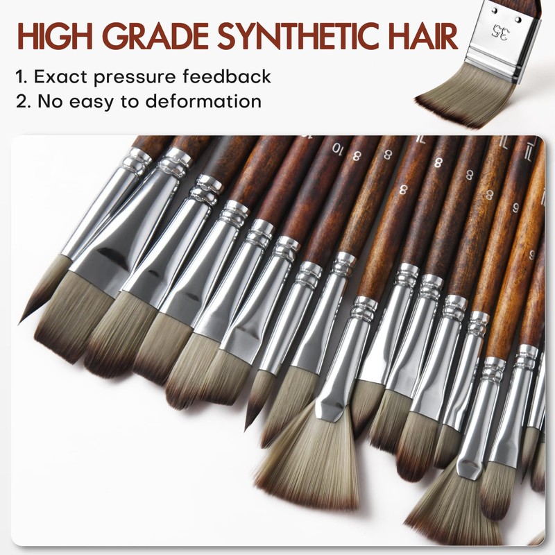- High-Quality Synthetic Bristles: The soft synthetic bristles are great for load capacity and control of colors, consistent smooth flow of paint. while maintaining excellent elasticity and shape retention. Sturdy enough not easy to bend or split with pressure. They are easy to clean, rinse and look as good as new, making them suitable for long-term use.