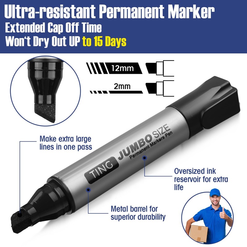 - Bulk Pack: this pack of 10 jumbo markers ensures you always have sufficient stock, ideal for offices, or other bulk marking needs; Please try to gently open the lid each time to avoid spilling ink and cover the pen when not in use, so as not to volatilize the ink and affect the use experience