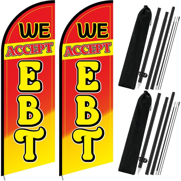 - Comprehensive Kit: our We Accept EBT feather flag kit offers a solution, featuring 2 food truck feather flag banners and 2 poles; This advertising swooper flag banner enhances your truck's visibility, ensuring marketing outreach
