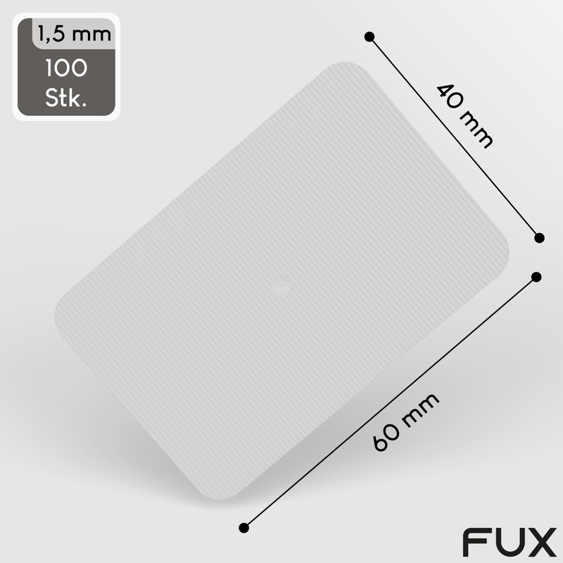 FUX Pack of 100 Plastic Spacers, 60 x 40 x 1.5 mm, Glazing Blocks, Underlay Plates, Plastic Plates, Adjustment Plates, Window Wedges (Thickness: 1.5 mm)