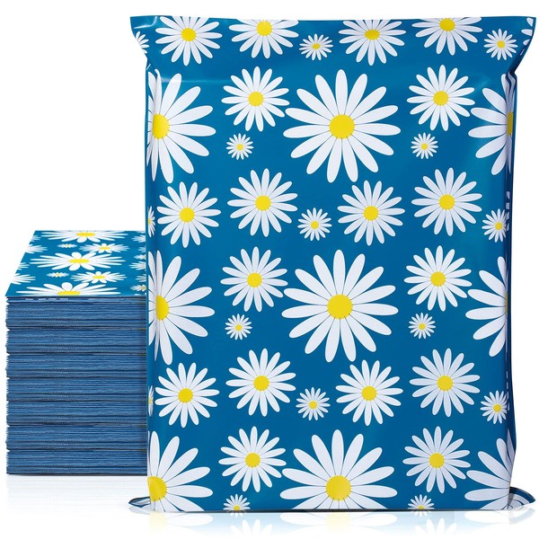 Fuxury 10x13 Inch 100Pcs Blue Daisy Poly Mailers Shipping Envelopes, Self-Sealing Envelopes, Boutique Custom Bags, Enhanced Durability Multipurpose Envelopes, Keep Items Safe & Protected
