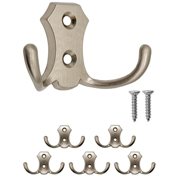 Fuxxer® - 5 Classic Coat Hooks, Clothes Hooks, Double Hooks, Kitchen Hooks, Iron Design, Set of 5 (Bronze)