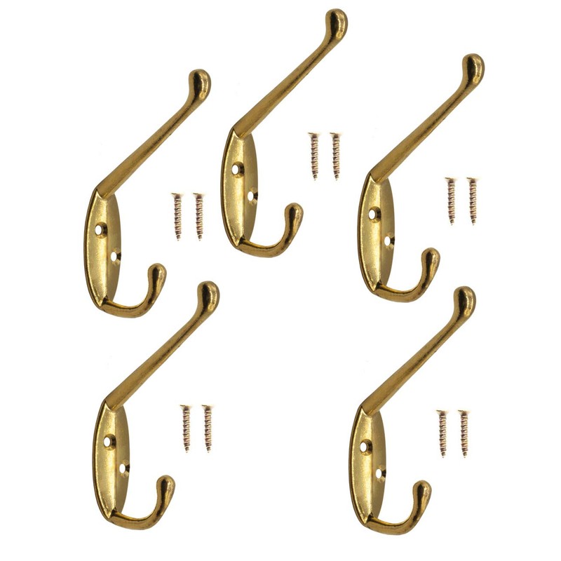 Fuxxer® 5 x Classic Coat Hooks Double Hooks 85 x 55 mm Set of 5 Gold Design