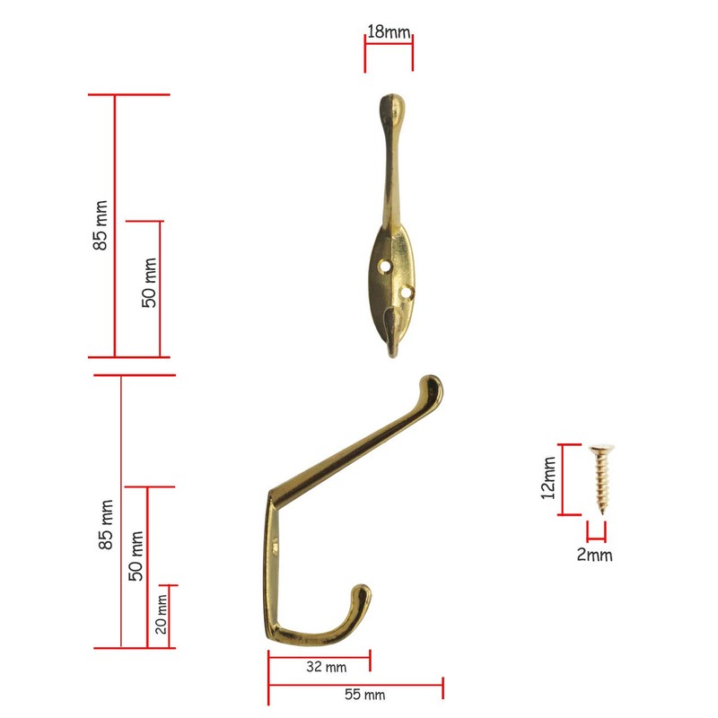 - Technical data: Dimensions approx. 8.5cm high, 5.5cm long, 1.8cm wide, hole spacing 10mm, package includes 5 hooks and 10 screws.