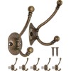 FUXXER® - Antique coat hooks, clothes hooks, hat hooks, towel hooks, iron hooks, wall hooks, brass bronze design, vintage country house retro, 90 x 62 mm, set of 5.