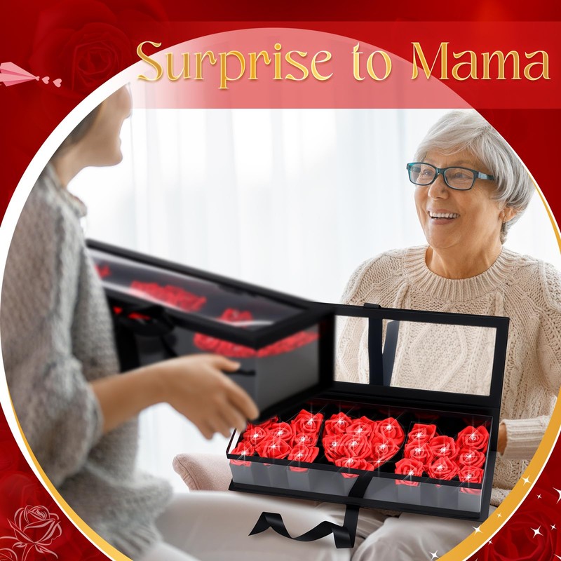 - Package Included: our package includes 1 piece " MOM" letter shaped box and 1 piece " I Love You" letter shaped box, 100g shredded paper fill, 50 pieces artificial roses, 50 pieces clear diamond bouquet pins and 2 pieces 3D Mother's Day greeting cards, the attached roses can be put directly into the empty flower gift box, or you can take out some flowers and put them in other gifts, your mom will be very surprised and happy to receive such a gift