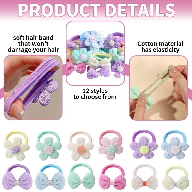 FUYTSUO Pack of 24 Hair Bobbles Girls, Baby Girl Hair Scrunchies, Small Hair Bobbles with Bows for Newborns, Hair Bow with Flowers and Bow Girls for Girls Baby Toddler