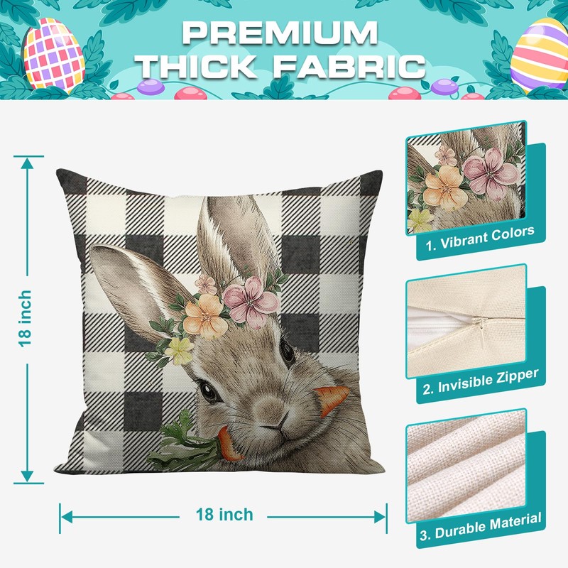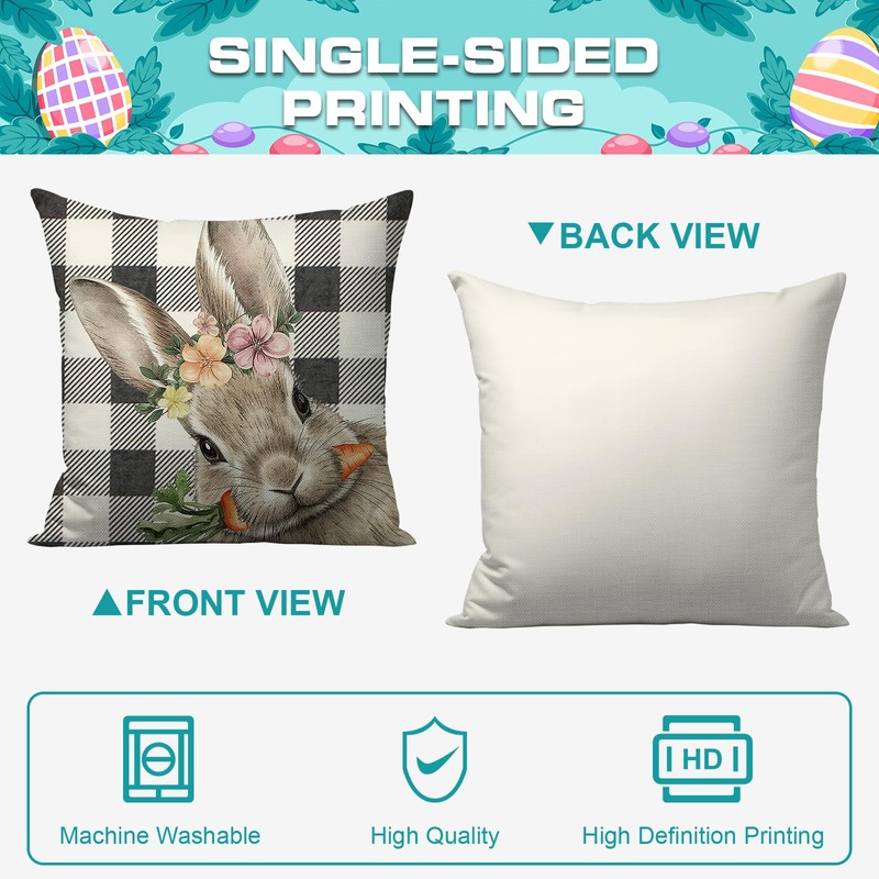 - 【SIZE & PACKAGE 】This easter pillow covers fits 18x18 inch inserts, Set of 4 holiday pillow covers. No Insert or Filler. Pattern is only on the front and no printing on the back.