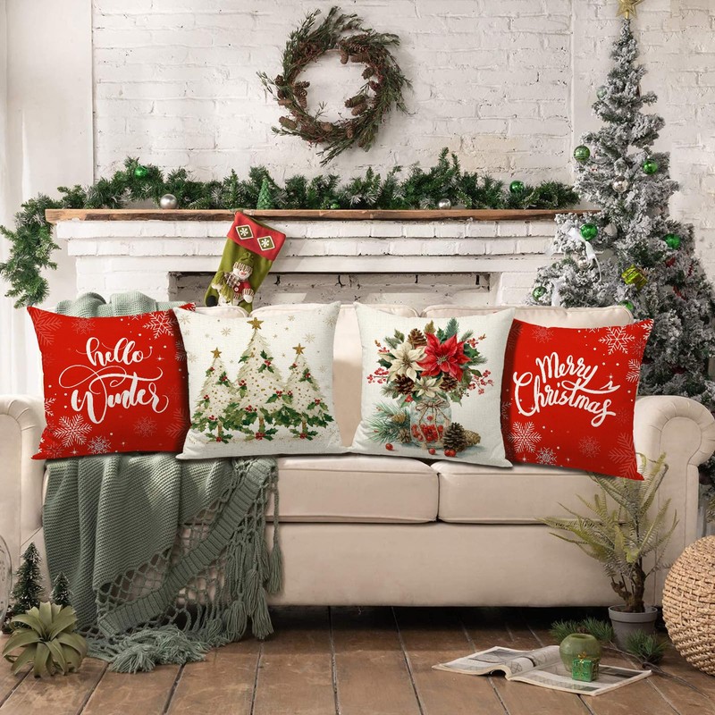 - 【SIZE & PACKAGE 】This Christmas pillow covers fits 18x18 inch inserts, Set of 4 holiday pillow covers. No Insert or Filler. Pattern is only on the front and no printing on the back.