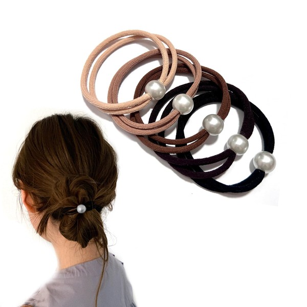 Fuyunohi ヘアゴム パール 黒 5本セット 髪ゴム 高弾性 韓国風 跡がつかないヘアゴム 髪留め おしゃれ 跡がつかない ヘアアクセサリー パールヘアゴム 大人 優雅 上品 ビューティーク