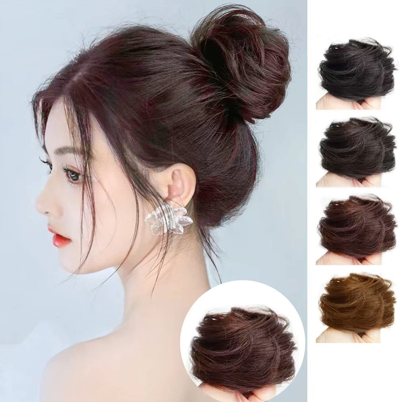 Fuyunohi お団子ウィッグ ウィッグ お団子 ゴム式 シュシュ ポイントウィッグ つけ毛 髪飾り おしゃれ 人気 結婚式 七五三 成人式 卒業式 和装 着物 浴衣 普段使い ウィッグ レディース ボリューム 装着 簡単 自然感(直、ダークブラウン)